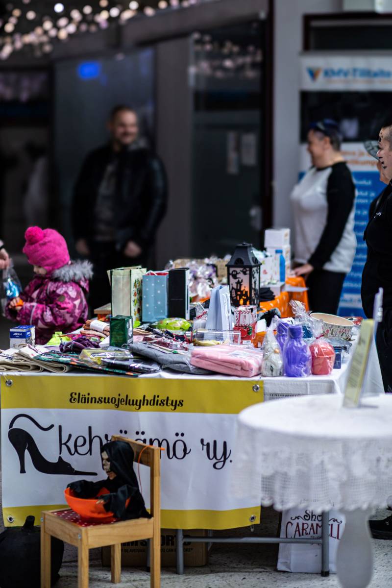 Keskustan liikkeitä kierrellessä ilta kuluu rattoisasti. Monet yritykset järjestävät Halloween-illan kunniaksi pientä ohjelmaa ja jaossa on karkki jos toinenkin. Torilla on torimyyjiä, makkaraa ja muita herkkuja sekä tietysti hämärää tunnelmaa.