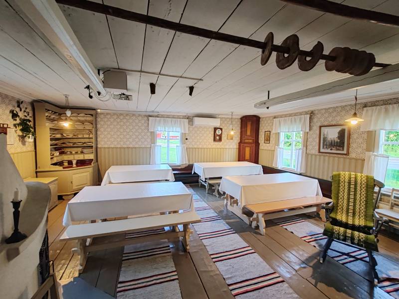 Talon sisustus on toteutettu tunnelmalliseen perinteiseen tyyliin restaurointiopiskelijan suunnittelemana. Talon eteläpäädyssä on tupa, jossa istumapaikat n. 30 henkilölle, valkokangas ja projektori sekä äänentoisto. Eteläpäädyssä on kotikeittiö täyskokoisella jääkaapilla ja astianpesukoneella. Keittiö on tilava, talolla on järjestetty mm. kansalaisopiston ruokakursseja.