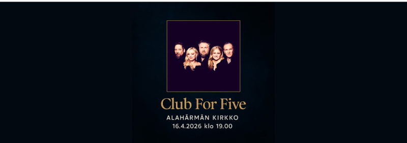 Club For Five esiintyy Alahärmän Lionsien hyväntekeväisyyskonsertissa 16.04.2026 Alahärmän kirkossa klo 19.00.