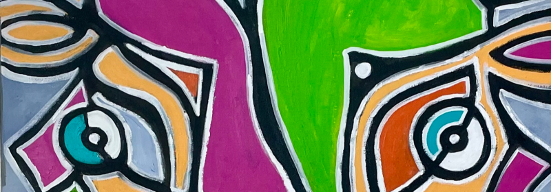 Y -talon galleriassa 2. Krs R-kioskin kainalossa, värikäs taidenäyttely