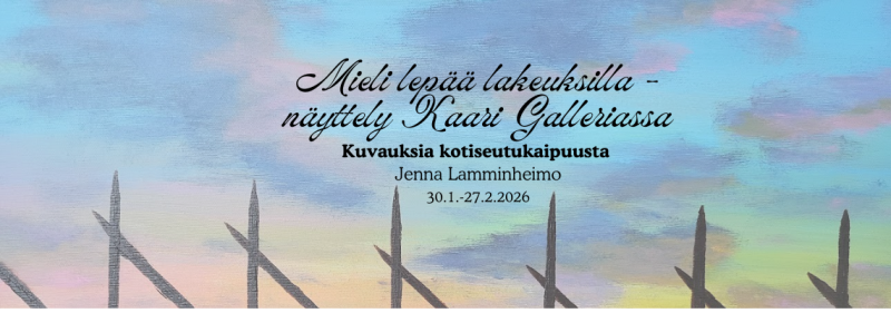 Kauhavan Kaari Galleriassa 30.01. – 27.02.2026 on esillä Jenna Lamminheimon kotiseutukaipuuta käsittelevä Mieli lepää lakeuksilla -näyttely, Näyttelyn avajaisia vietetään perjantaina 30.01. klo 17,00 – 19.00. Avajaisissa taiteilija on paikalla kertomassa teoksistaan sekä tarjolla on kahvia, teetä ja pientä purtavaa!
