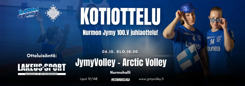 Tapahtuma JymyVolley – Arctic Volley Naisten lentopallon mestaruusliigan kotiavaus! Aika: 6.10.2025 klo 18:30–21:00 Paikka: NurmohalliLänsitie 30, 60550 Nurmo 60550 Seinäjoki Järjestäjä: Jymyvolley Oy Jaa Jaa palvelussa "Facebook" Jaa palvelussa "X" Jaa palvelussa "LinkedIn"