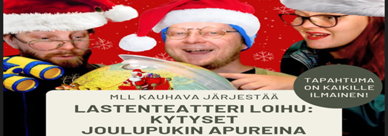 Sunnuntaina 21.12. klo 15 Lastenteatteri Loihu saapuu Kauhavan nuorisoseuralle esittämään koko perheen esityksen Kytyset Joulupukin apureina. Teatteriesitys on kaikille ilmainen!