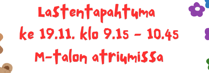 Lastentapahtuma päiväkoti-ikäisille lapsille M-talon Atriumissa (osoite Östermyrankatu 9, pääovi). Klo 9 – 9.20 Nukketeatteri. Sen jälkeen erilaisia toimintapisteitä. Tule mukaan viettämään mukava hetki lasten kanssa! Kahvilaravintola Toivosta voi ostaa samalla jotain herkkua. Järjestäjä: Kyrkkärin kirjasto.