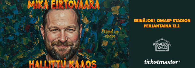 Hallittu kaaos on Mika Eirtovaaran stand up -show, jossa kaikki on mahdollista. Perjantaina 13.2.2026 OmaSp Stadionin Atria Loungen lavalla syntyy ainutlaatuinen sekoitus uutta ja vanhaa materiaalia – mitään ei ole täysin ennalta päätetty. Yksikään show ei ole samanlainen. Tämä on Mika Eirtovaara parhaimmillaan: iloista, hallittua kaaosta, joka ei tuomitse eikä saarnaa. Sen ainoa tehtävä on viihdyttää.