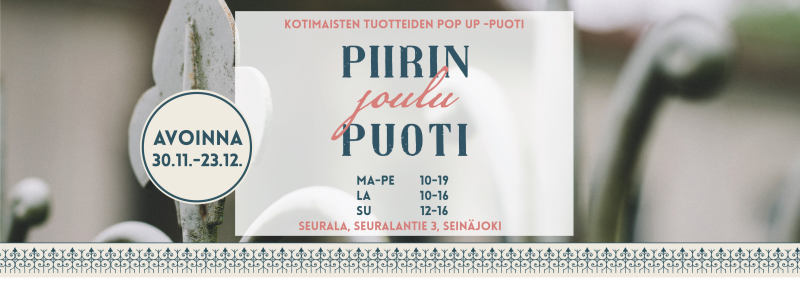 Suosittu Piirin joulupuoti järjestetään nyt jo viidennen kerran. Kotimaisten tuotteiden pop up-puoti avataan Piirin alueen portilla sijaitsevaan, vuonna 1928 valmistuneeseen, juhlatilanakin toimivaan Seurala-rakennukseen.