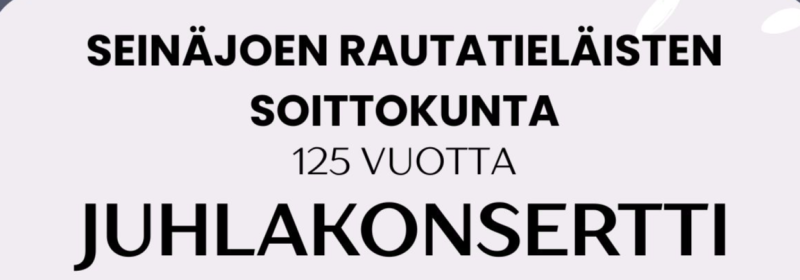 Seinäjoen Rautatieläisten Soittokunnan 125 vuotta -juhlakonsertti su 23.11.2025 klo 15 Seinäjoki-salissa.