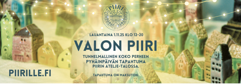 Tervetuloa kanssamme viettämään tunnelmallista pyhäinpäivän viikonloppua Piirille. Marraskuisen viikonlopun aikana herätämme Piirin luovuutta huokuvan Atelje-talon eloon valolla ja toivolla, Piirin historiaa kunnioittaen. Seuralassa voit tutustua Piirin monipuolisiin toimijoihin ja kahvitella Steiner-koulun pop up -kahvilassa. Myös Piirin kirkko ja sairaalamuseo ovat avoinna tapahtumassa klo 12-20. Piirin kirkon ympäristöön luodaan Muistojen polku – muistelupolku, jossa voit sytyttää kynttilän läheisesi muistolle.