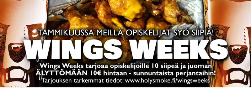 Tarjouksen tarkemmat tiedot: https://www.holysmoke.fi/wingsweeks