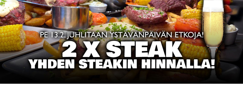 YSTÄVÄNPÄIVÄN ETKOISSA PE 13.2. TARJOILEMME 2 x STEAK YHDEN HINNALLA!*